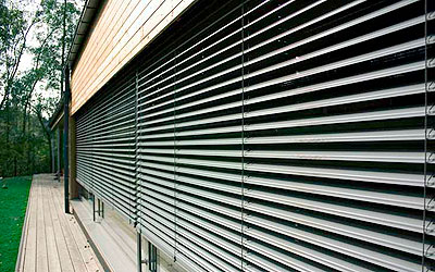 a zsaluzia teljesen fémből készül, és az ablakon kívül helyezkedik el, így nyáron a napsugárzást visszaveri, télen pedig a hőt benntartja